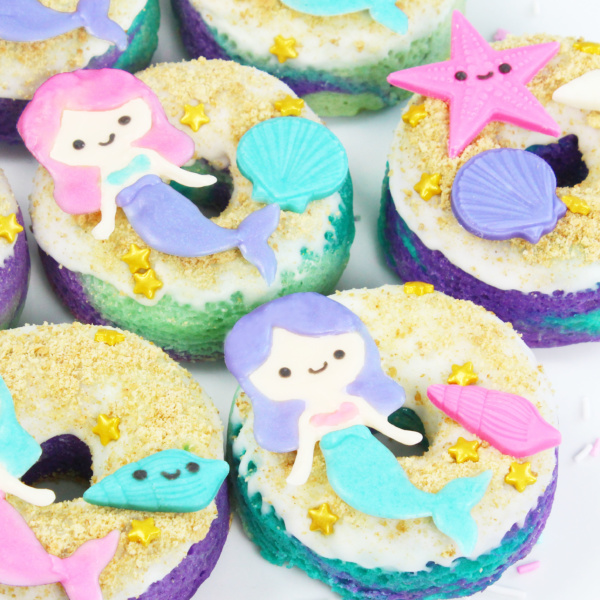 There’s no need to go “Under the Sea” to find awesome donuts!! Pretend that was funny and clever ? But seriously, these donuts are a beautiful addition to any summer party and they taste as good as they look! Super moist with nice vanilla flavor and tender crumb – enjoy!