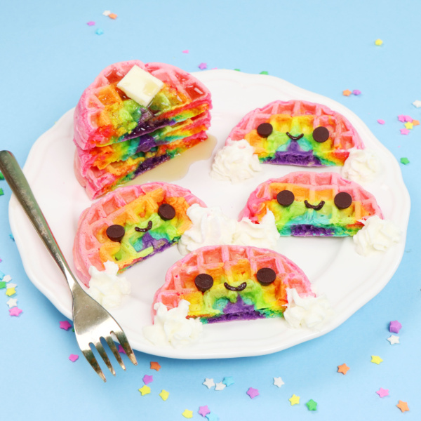 Helloooo there and welcome back!! 😄 Today we are making some adorable mini rainbow waffles with kawaii faces! Question for you: waffles or pancakes? If you can’t tell by this video, I’m a big waffle fan. LOVE that mix of crispy, fluffy, and buttery in waffles. But I love pancakes too!! What can I say — I’ll take carbs any way you serve them 😉 Enjoy!!